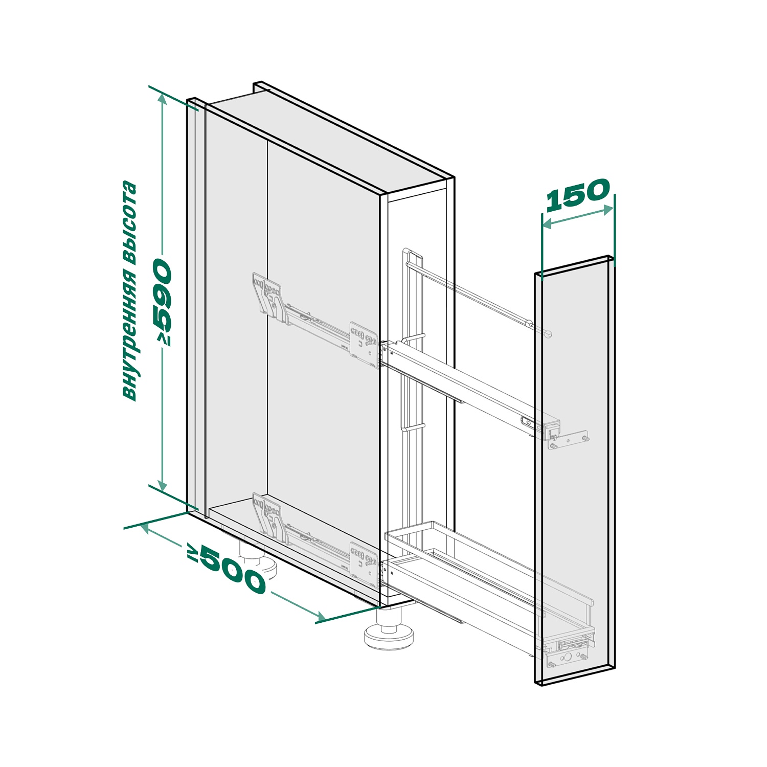 Бутылочница №15 для полотенец H 592 фасад 150 мм 3D