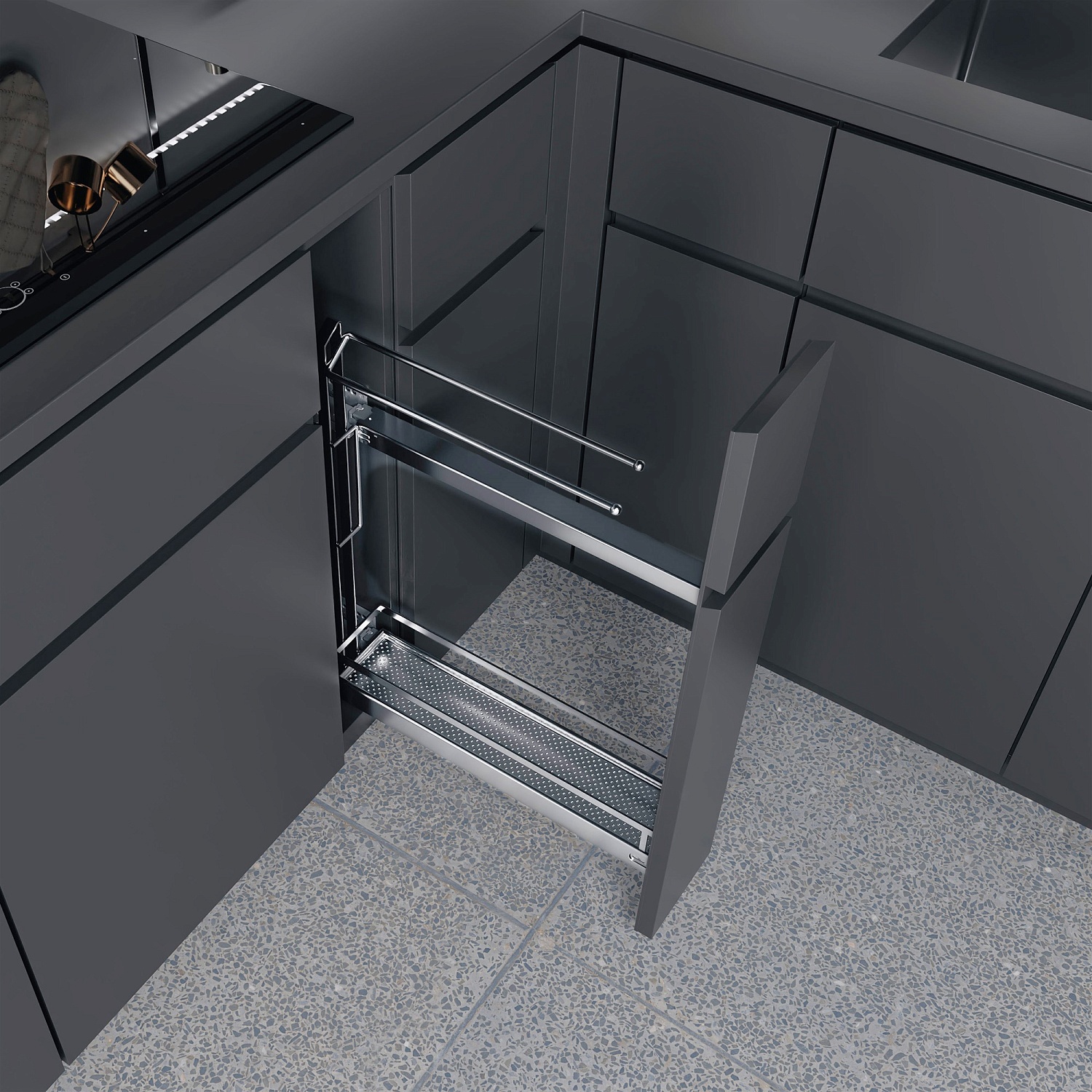 Бутылочница №15 для полотенец H 592 фасад 150 мм 3D