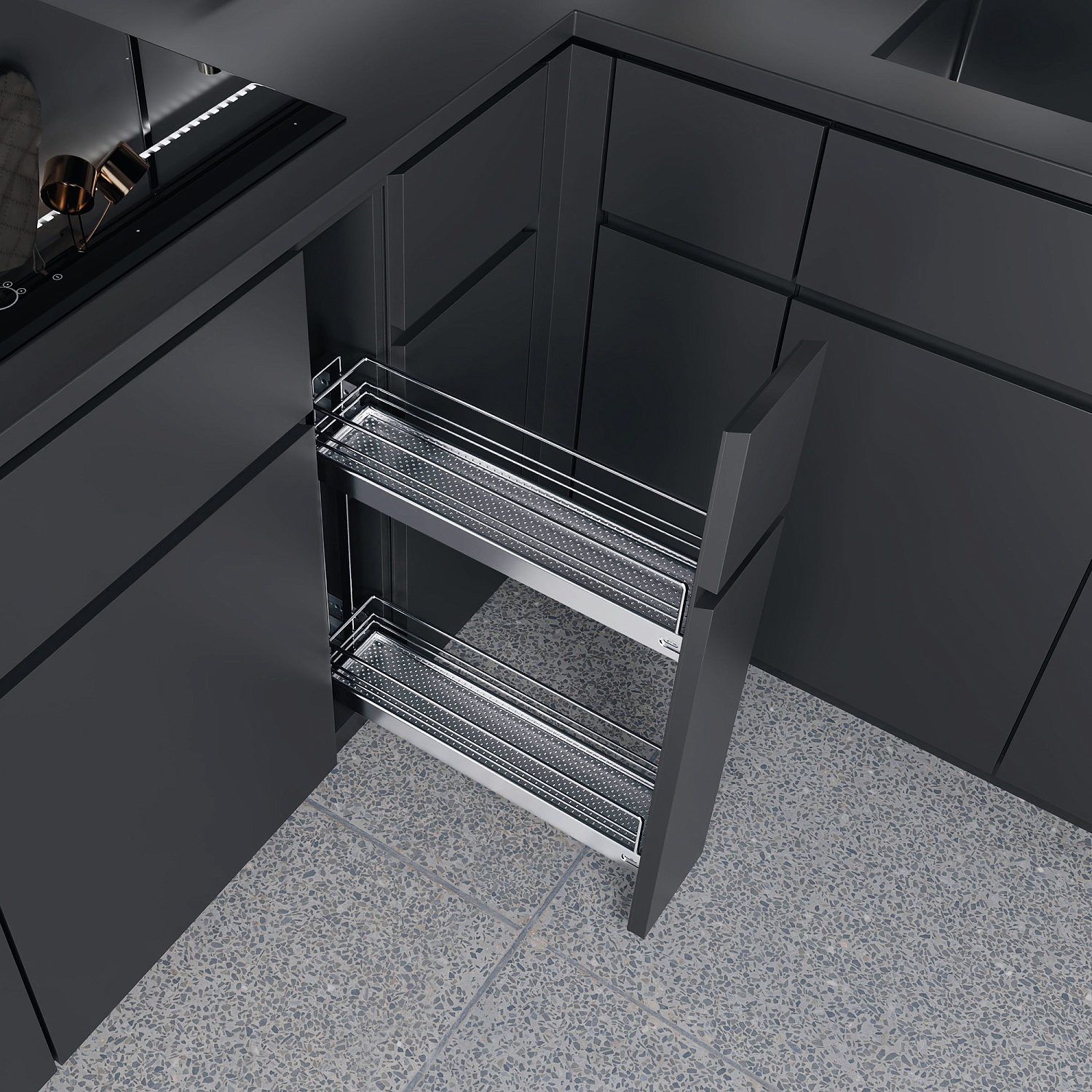 Бутылочница №15 с 2 полками H 542 фасад 150 мм 3D