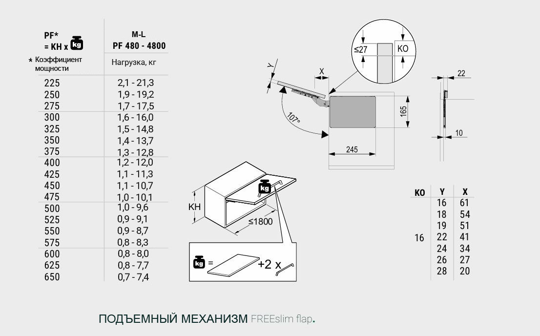 Силовой модуль тип M-L левый и правый, к подъемнику ФриСлим Флап, H 225-650 2 шт
