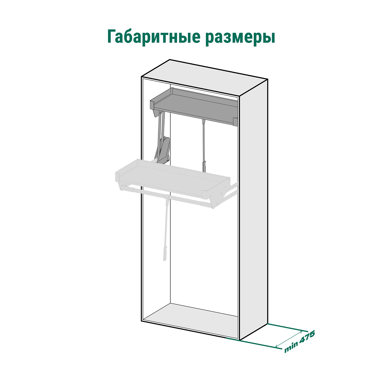 Общая нагрузка на механизм включает в себя: полезная нагрузка + собственный вес механизма 2 кг (максимальный вес ручки-тяги и штанги для одежды).